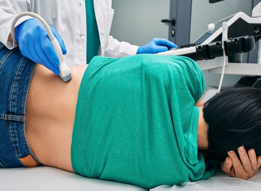 Undersökningen utförs med hjälp av en prob som förs över undersökningsområdet. Den kan omedelbart visualisera de organ som behöver synliggöras.